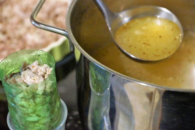 Борщ из утки с красной фасолью, со свежей и с квашенной капустой.