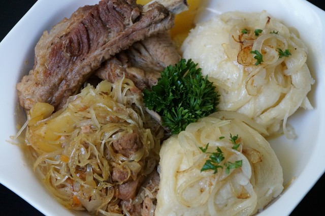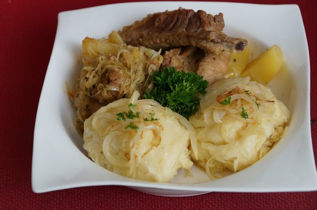 Когда не было мяса, готовили просто с картошкой и капустой. А с мясом был праздничный вариант. Блюдо относится к разряду "айнтопф" (Eintopf - в одном горшке). ![]() Kraut - это капуста, Kleis (Klees, Knepfle, Klump) - пампушки, клецки, галушки или ещё вернее Dampfnudeln - паровые клецки. Многие немцы любят также посыпать клёцки, пампушки и вареники обжаренными в сливочном масле крошками зачерствевшего хлеба. Часто тесто для паровых рулетов замешивают крутое, чтобы красиво его скатать, но когда вы его приготовите, оно уже на второй день будет, как резиновый кусок теста. Поэтому, именно пампушкам уделяется очень много внимания, т.к. именно они, впитавшие в себя аромат капусты и мяса, придают блюду очарование. ![]() В этом рецепте – тесто замешивается нежное даже немного жидкое, над ним нужно почти не дышать, но весь секрет в том, чтобы ему дать подняться и немного подсохнуть на воздухе. Cкрытый текст - Приятного аппетита! ![]() Последний раз редактировалось djuka, 10.12.2025 в 13:25. |