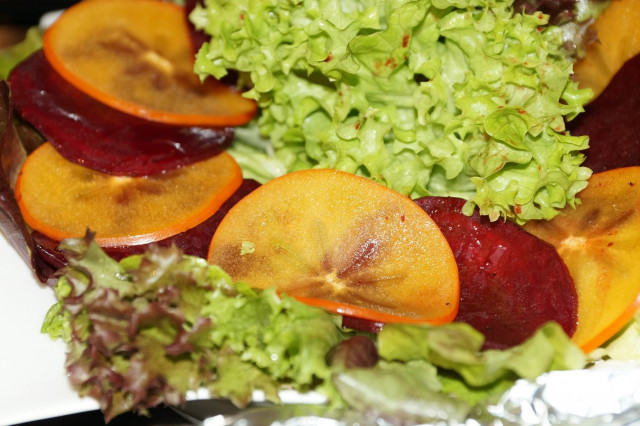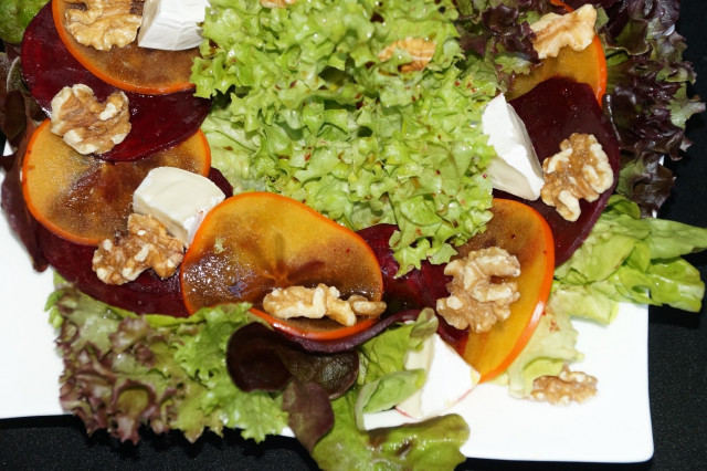 Салат из хурмы с орехами, сыром, апельсинами и листьями салата. ![]() ![]() Пожалуй, это мой самый любимый салат. Каждый раз меняя виды салатов и сыров – вкус тоже будет изменяться. В этом салате весь смак в дрессинге – кислоту бальзамического уксуса нейтрализует мед, масло все связывает, а пикантность придает горчица. А сколько в салате полезности! С приходом осени слово «иммунитет» встречается в каждой третей публикации. А на работе в свободное время чаще сплетен и последних новостей обсуждают лекарства от простуды и профилактику для тех, кто «чувствует себя неважно». Рекомендую хурму (если конечно у вас нет противопоказаний против нее), в качестве антивирусного агента и видимо, не случайно этот продукт сейчас как раз — сезонный. Наличие в родословной витамина С, надежного защитника от гриппа и респираторных заболеваний. А ее комбинацию: витамин С, бета-каротин и калий ученые Калифорнийского университета в прошлом году признали «золотым» составом для выработки новых иммунных клеток. Что же происходит с телом, когда вы наслаждаетесь спелой хурмой? Хурма обладает омолаживающим эффектом, избавление от отеков, способность глаз к ночному видению, цветовое восприятие и профилактика конъюнктивита. Мякоть хурмы обладает бактерицидными свойствами. Хурма полезна при истощении (и нервном, и физическом). Но только не нужно сильно увлекаться хурмой из-за повышенной фруктозы - 1 - 2 штуки в сутки! В гастрономической культуре хурма гораздо более универсальна, чем принято считать. Ее можно добавлять в салат (с зеленью, авокадо и грушей); делать парфе (на основе ванильного йогурта, малины и гранолы); сбрызнуть лимонным соком, присыпать чили и подавать с мягким сыром; а еще — заворачивать утром в блинчики. Кстати, хурма это ягода! Популярные сорта хурмы объединяются в группу сортов, известную под названием «королёк». Популярна также разновидность хурмы восточной «Шарон», которая называется так по названию долины Шарон в Израиле. «Шарон» не содержит семян и имеет более мягкий вкус, так как содержит мало танина. Строго говоря, «Шарон» — это не отдельная разновидность, а коммерческое название обычной хурмы, к которой было применено химическое созревание: в присутствии спирта или окиси углерода танин в плодах связывается в нерастворимую форму. Некоторые источники указывают автором научного названия вида Diospyros kaki Линнея младшего, который опубликовал это название в работе «Supplementum Plantarum Systematis Vegetabilium Editionis Decimae Tertiae, Generum Plantarum Editiones Sextae, et Specierum Plantarum Editionis Secundae» в 1782 году. Высокое содержание танина в незрелых плодах хурмы восточной вызывает горьковатый вяжущий вкус, который исчезает вместе с танинами при созревании и на морозе. В Китае хурма восточная культивируется издревле. Четыре добродетели приписываются ей: она долго живёт, она тенистая, она используется птицами как место гнездования, и она не страдает от насекомых-вредителей. Для жителей страны Восходящего солнца это растение особенное, его считают «символом мира». Сакральные кусты одними из немногих пережили атомную бомбардировку Нагасаки. К слову, именно в Японии вывели редкий сорт суперсладкой хурмы «Тэнкафубу», который впервые поступил в продажу в прошлом году по цене около 2000 долларов за штуку. Cкрытый текст - Cкрытый текст - Быстрая закуска из хурмы с сыровяленой ветчиной (Tapas – Sharonfrucht-Kaki mit 