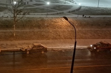 Фото из сети. Вчера вечером в Петербурге шёл первый снег.
