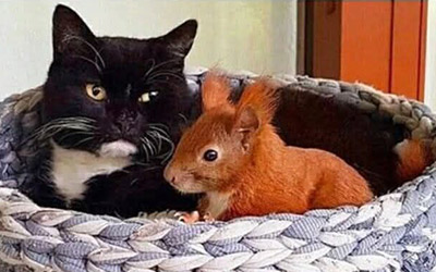 Рядом с ней суетились четыре маленьких бельчонка. Они поднимались на задние лапки и, схватившись передними за кошачью шерсть, тыкались в неё мордочками.
