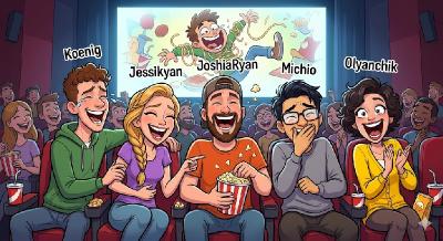 Смешные зрители в кино мультики Koenig, JoshuaRyan, Jеssikа, Michio, Olyanchik