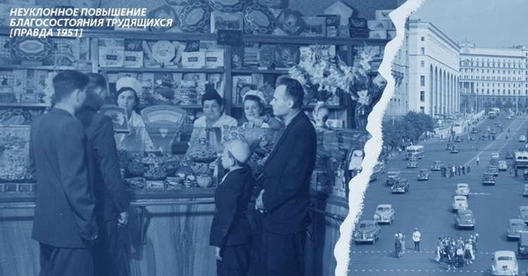 Меня всегда вводил в недоумение лозунг "неуклонного повышения благосостояния". Если на Западе благосостояние повышается быстрее и неуклоннее, то почему бы не взять западную модель и обойтись без всех этих мук (Гулага и т.п.)?... Сейчас это недоумение выглядит наивным. Понятно же, что все это пропаганда для сохранения власти партийной верхушки.