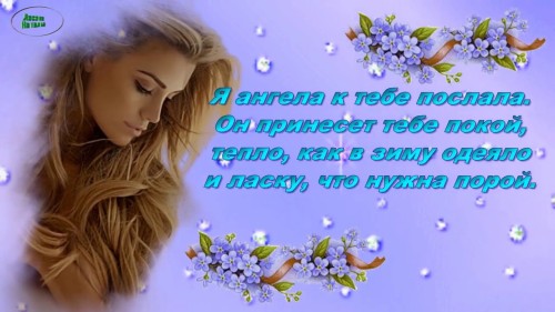 Я ангела к тебе послала. Он принесёт тебе покой, тепло, как в зиму одеяло и ласку, что нужна порой... Он успокоит, обогреет, коснётся нежно глаз твоих... Он тайны все тебе доверит, обед разделит на двоих... Улыбкой он с утра разбудит. Ты улыбнись ему в ответ. Он братом, другом тебе будет на много, очень много лет... А вечером, когда уставший вернёшься в свой уютный дом, Он как листвой златой, опавшей, тебя накроет с головой... Нальёт вина в бокал хрустальный, Умело разожжёт камин, В котором грусть твоя, печали В огне исчезнут в миг один... Ночь закружилась птицей вольной… А я не сплю, я не устала. И на душе мне так спокойно… Я ангела к тебе послала. Автор неизвестен |