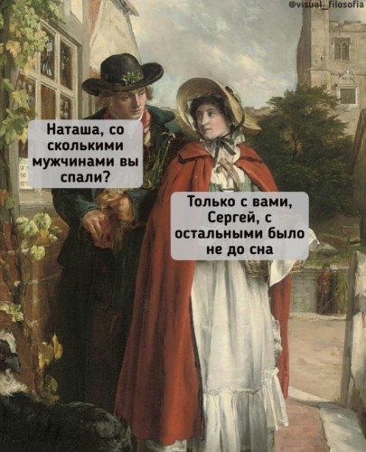 В смысле, шёл в ларёк, за пивом. Мне навстречу, вперемешку, Дядьки, тётьки, бомж пугливый, Девки, в свой айфон болтая, Парни, явно с перепою… За углом я вдруг влетаю В неизвестное такое… Каблуки — сэмэ пятнадцать, Сорок пятого размера Обувь. Я припух, признаться… Это что тут за химера? На лицо гляжу с испугом — Это ж наш сантехник Вася!!! Говорю ему не грубо: «Вась, ты точно переквасил…» – Я, сосед, — он отвечает, Наступив ботинком в лужу, — Всё о моде нынче знаю. Чем Софи Лорен я хуже??? Огорошен и контужен Вася был моим ответом: «Ты — Софи Лорэн не хужэ, тока жаль... што сисек нету!». Cкрытый текст - |