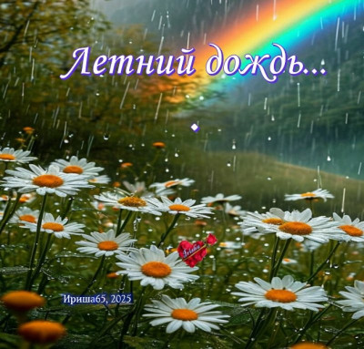 Летний дождь Проснулась под шум летнего дождя, В окошко капли нежно так стучали, Словно по струнам переливами звеня, Мелодией красивою звучали. Я слушала, дыханье затая, Как виртуозно дождь играл на скрипке И в мир фантазий погружал маня , Грань между ним с реальностью так зыбка. Сквозь тучи солнышко веселое взошло, Лазурным светом в лужах отразилось, А на душе и сердце так тепло, Словно печаль вместе с дождинкой смылась. И в миг дождя рассеяв колдовство, Аккорд финальный громом прозвучит, Подарит лето красок волшебство, На небе радугой красиво заблестит. © Copyright: Ириша65, 2025 |