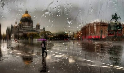 Питерский ливень Сырой асфальт и освежились стёкла Автомобилей питерских дорог! И плитка тротуарная промокла, Наклоном направляя водный сток. Залито всё! Хоть выжимай руками! А гром-проказник напугать всех рад! И отражается витринными рядами Небесный электрический разряд. Шалит циклон с травой - газонным мехом, Невы поверхность - водное букле; И хочется в такси подольше ехать, Рассматривая капли на стекле... Эльна Кива |