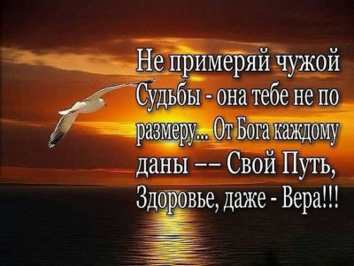 У каждого судьба своя У каждого судьба своя, Пусть Бог от нас ее и прячет, Но знаешь ты и знаю я — нельзя ее переиначить. И каждому отпущен срок, и обозначены задачи, чтобы осилен был урок и пройден путь, что предназначен. И не ропщи, что тяжек крест. Не распаляйся гневным словом. Кто путь достойно не прошел, вернется к испытаньям снова. У каждого судьба своя, Но выбираешь ты дорогу, что через горы и моря ведет всегда с любовью к Богу. А. Санверова |