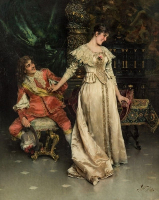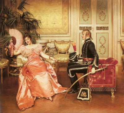 Наталья Пинчук — Старомодный флирт Флирт - обольщения искусство: Томленье взгляда мимолётно, Дрожанье пальчиков в перчатке, И розовость ланит для чувства, И локон вьётся беззаботно, Красноречивы даже складки В движенье ножкой незаметно, И туфли лишь мысок изящной Кружок рисует на паркете... Старанье кавалера тщетно - Пока не время... Безучастной И кроткой в плавном пируэте Прекрасна девичья округлость: Корсет, банты, атлас блестящий, Шуршанье юбок и улыбка, Пленяющая губ припухлость, И флирт пьянеюще манящий Сдвигает зАнавеса зыбкость, И в уголочке потаённом Со вздохом сладкого томленья, С волною робкого восторга Играют перси медальоном, Финал восходит к наслажденью Флирт-поцелуем - платой "торга"... |
