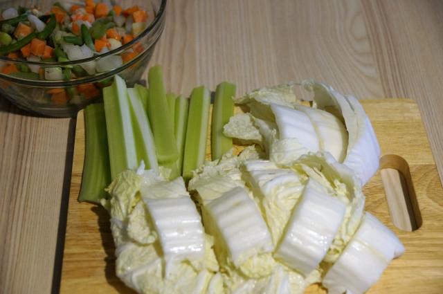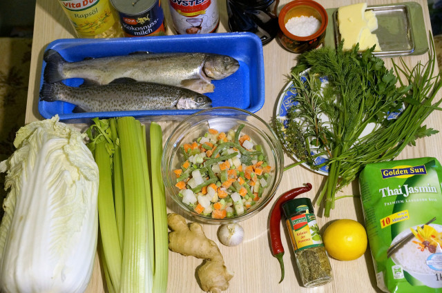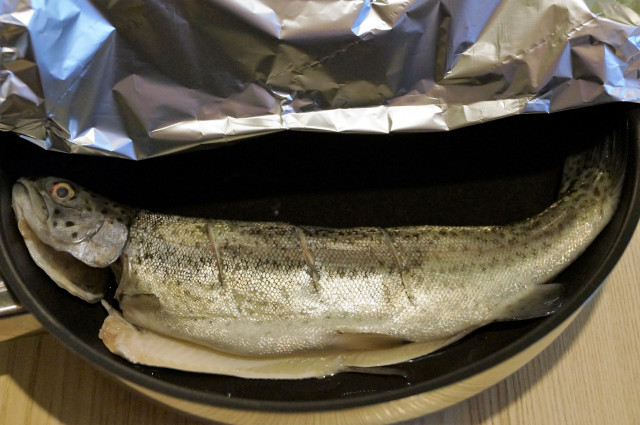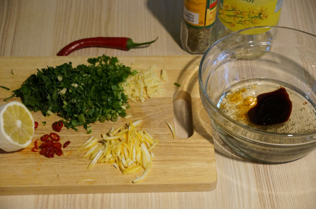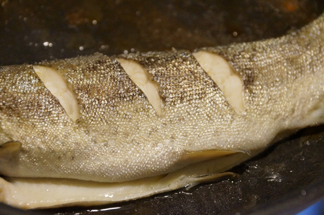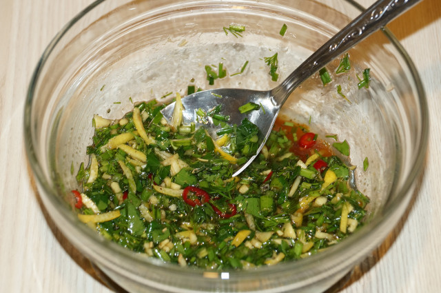 Так мелко насечь брюшину не проблема, но опять же, лес! Хоть маленький столик с собой и брали, но резать на нем неудобно, так что где можно было не мельчить, там и не мельчили. |